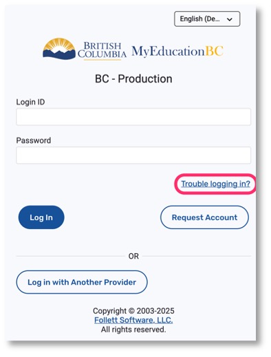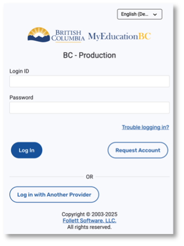 A login ID and a temporary password would have been provided to you by email at the time your account was created. The email would have come from sysadmin@myeducation.gov.bc.ca.