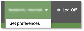 After you have logged in, you can make changes to your preferences by selecting the drop-down arrow beside your name and ‘Set Preferences’ on the top right of the screen.