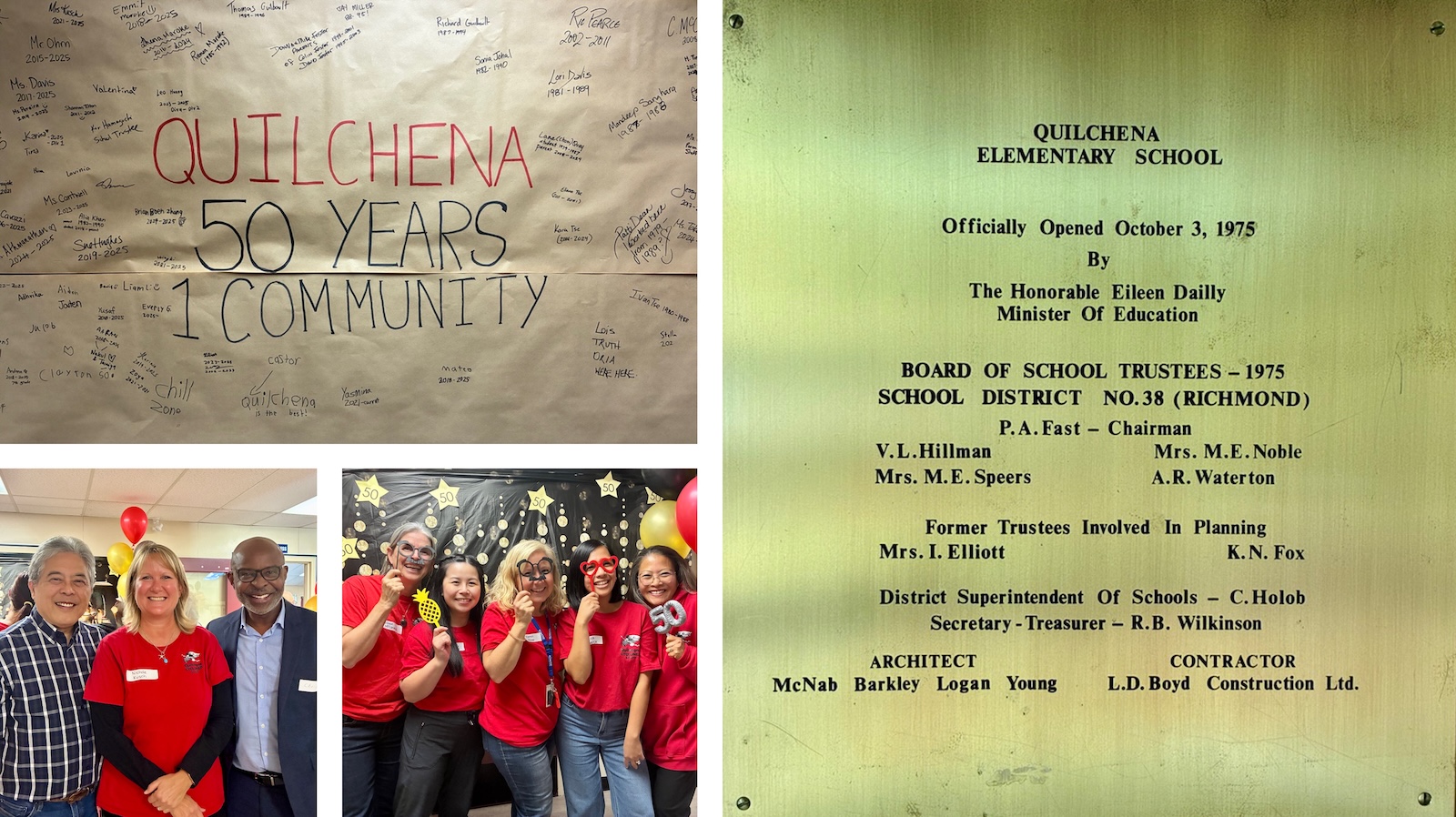 Quilchena Elementary marked its 50th anniversary with a celebration on October 2, honouring five decades of learning, growth and community. Students, families, alumni and staff gathered for a lively open-house event filled with activities and cherished memories. Guests took part in a school-wide scavenger hunt and enjoyed slideshows and displays featuring photos from past decades.
